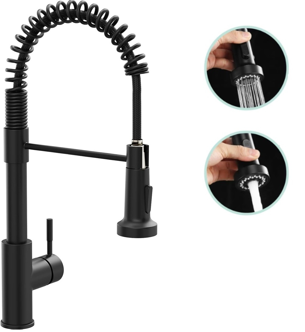 Bateria chiuveta bucatarie GABOS® imbina designul modern cu functionalitatea profesionala, fiind ideala pentru bucatarii contemporane. Robinetul bucatarie din inox cu finisaj negru mat ofera un aspect elegant si minimalist, potrivit pentru majoritatea stilurilor de amenajare. Bateria bucatarie cu dus si pulverizator retractabil permite spalarea usoara a vaselor, legumelor sau chiuvetei datorita flexibilitatii ridicate. Rotirea completa de 360° asigura acces total la intreaga suprafata a chiuvetei.