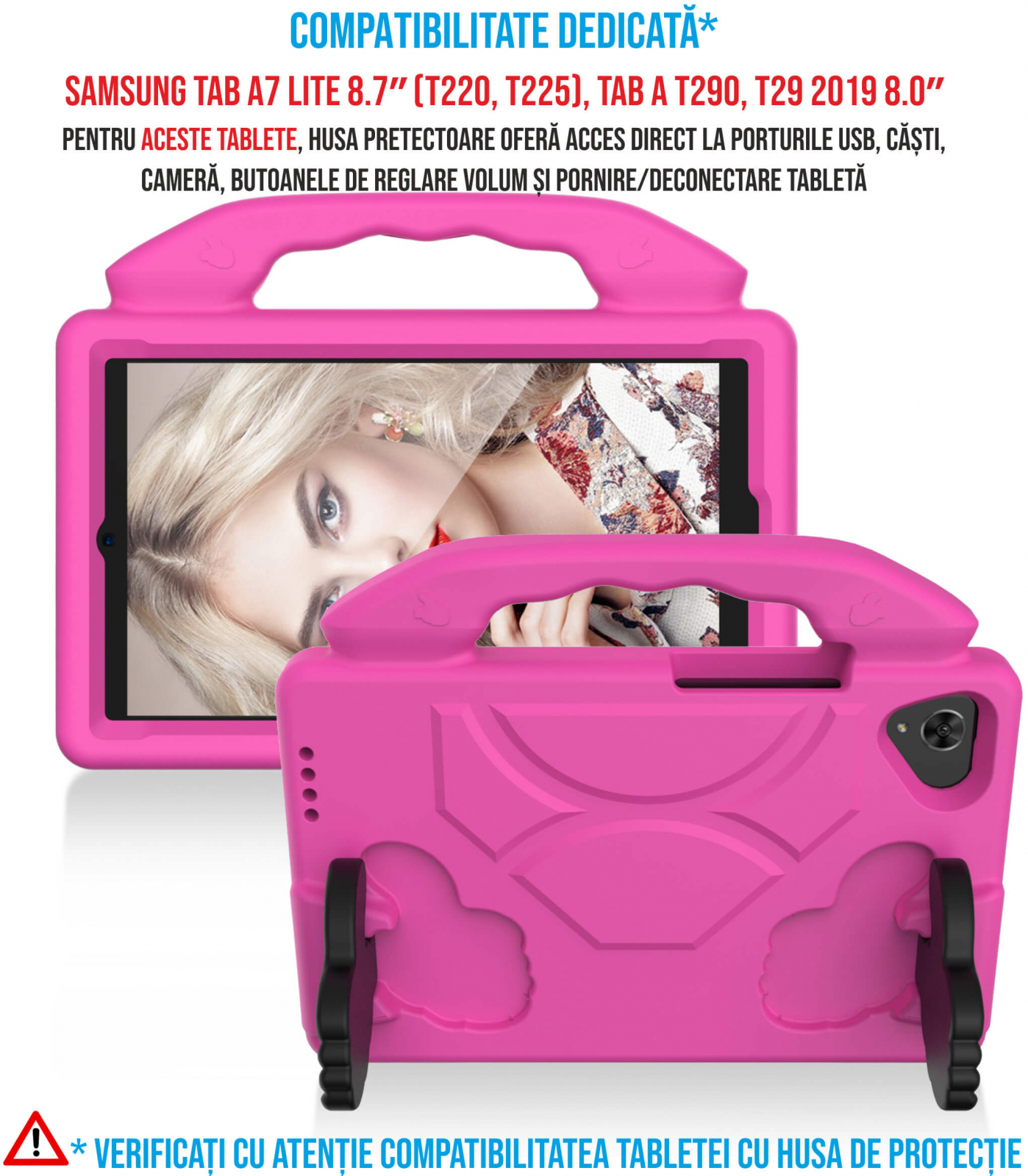 Husa protectie tableta pentru copii compatibila cu Samsung Tab A7 Lite 8.7 inch (T220, T225), Tab A T290, T29 2019 8.0 inch, Ideas4Comfort, protectie silicon antisoc rezistenta la lovituri
