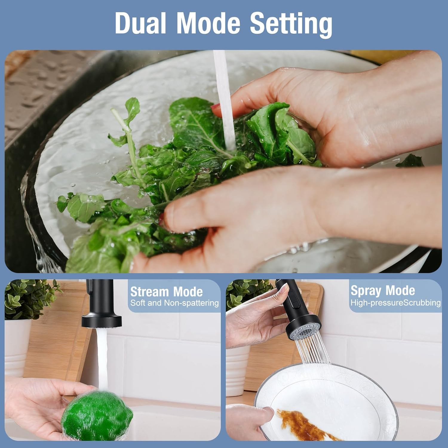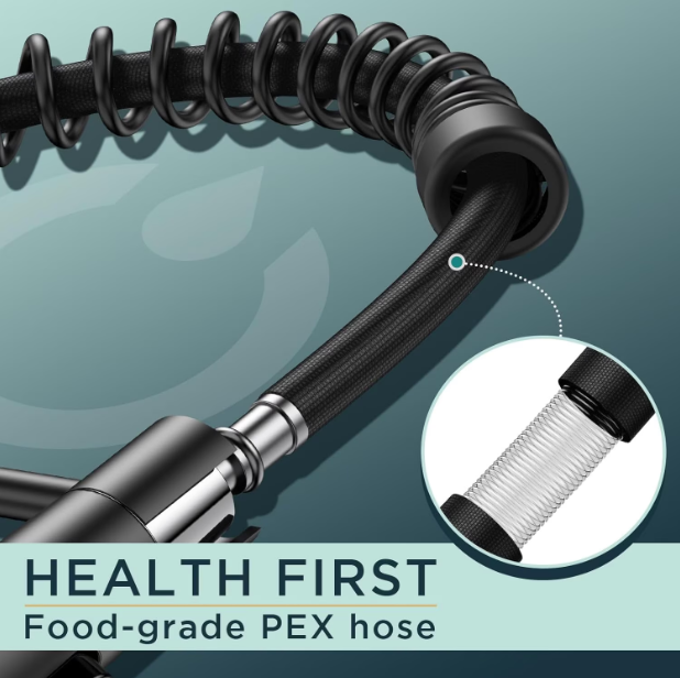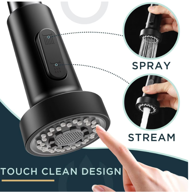 Bateria chiuveta bucatarie GABOS® imbina designul modern cu functionalitatea profesionala, fiind ideala pentru bucatarii contemporane. Robinetul bucatarie din inox cu finisaj negru mat ofera un aspect elegant si minimalist, potrivit pentru majoritatea stilurilor de amenajare. Bateria bucatarie cu dus si pulverizator retractabil permite spalarea usoara a vaselor, legumelor sau chiuvetei datorita flexibilitatii ridicate. Rotirea completa de 360° asigura acces total la intreaga suprafata a chiuvetei.