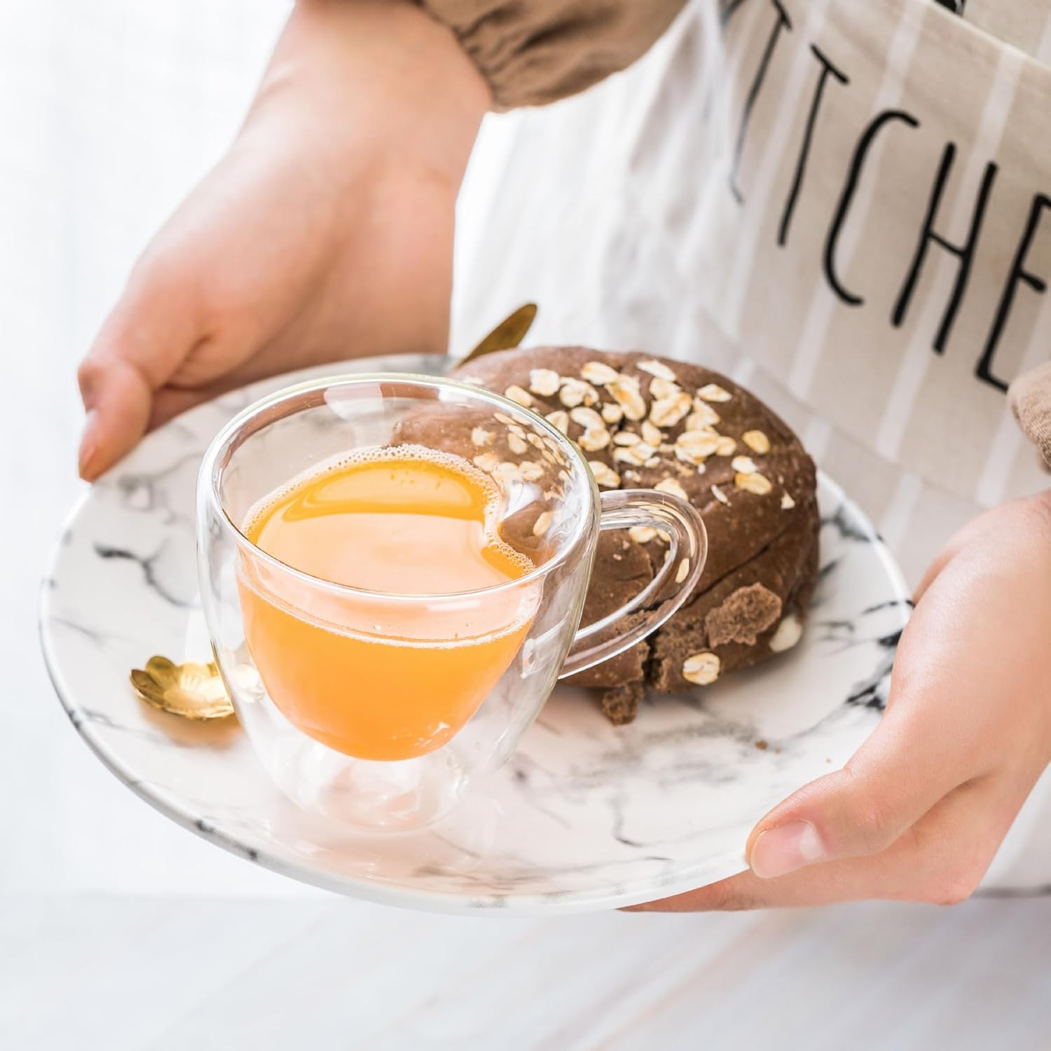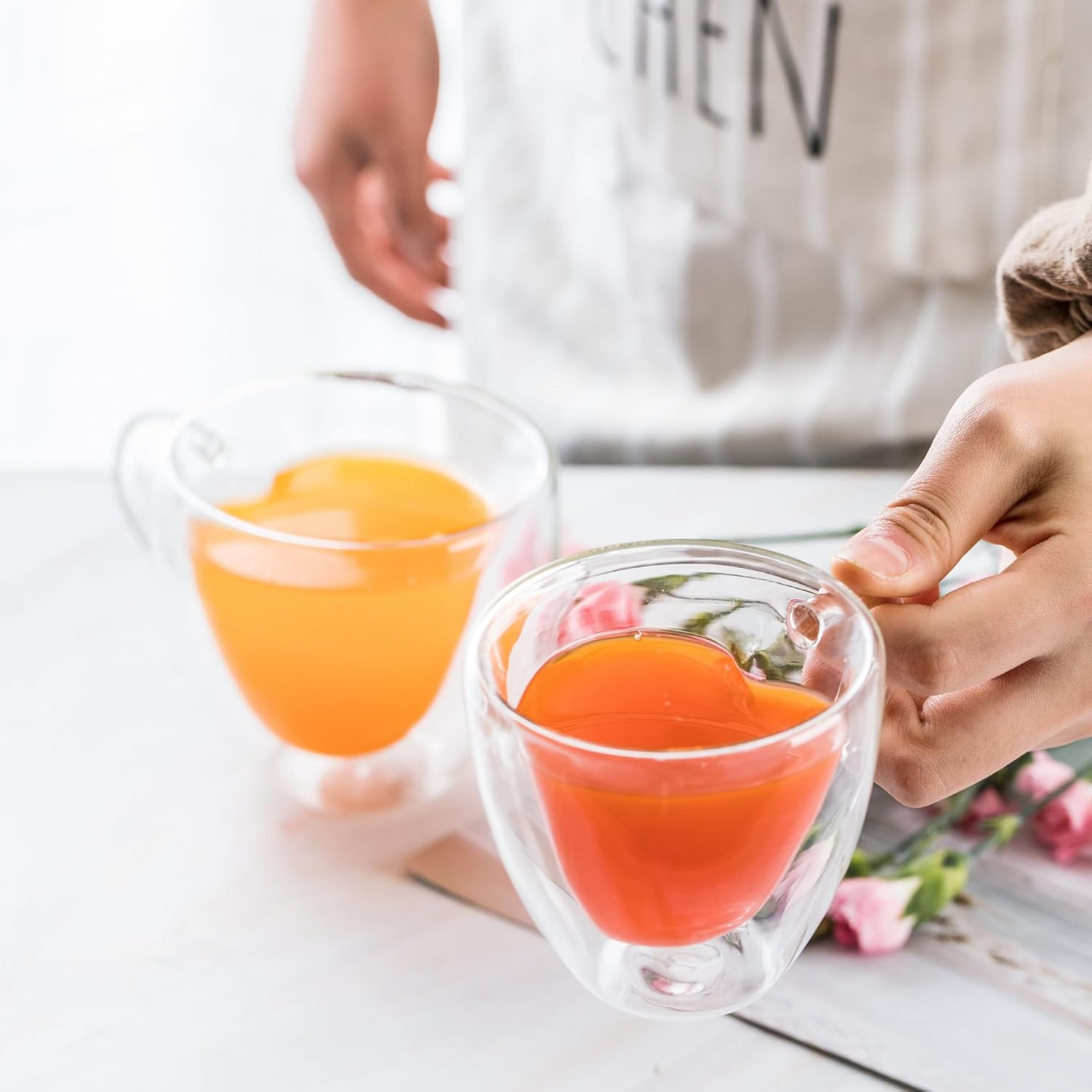Paharul cu pereti dubli, de 150 ml, sub forma de inima si cu maner ofera izolare excelenta, mentinand bauturile calde mai mult timp si protejand mana impotriva temperaturilor. Sticla borosilicata premium este ultra rezistenta la socuri termice, pastrandu-si claritatea si aspectul crystal-clear in timp. Interiorul in forma de inima creeaza un efect vizual unic, transformand bautura intr-un floating heart shape mug extrem de atractiv. Manerul ergonomic asigura confort, iar structura cu pereti dubli adauga eleganta si functionalitate oricarei rutine zilnice.