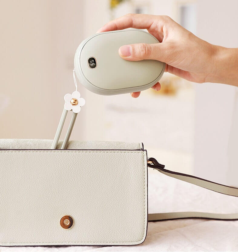 Incalzitorul de maini este micut, cantarind aproximativ 200 de grame si de marimea unui mouse de calculator. Il puteti pune in poseta, in torpedoul masinii si incape in orice buzunar de la blugi sau geaca. Il puteti lua la birou, la terasa, in transportul public, la plimbari sau il puteti folosi in timpul practicarii sporturilor de iarna. Este atat de compact, incat puteti introduce incalztitorul de maini in manusi sau il puteti plasa chiar si in zona abdominala.